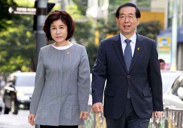 박원순 새정치민주연합 서울시장 후보가 30일 서울 구로구 구로3동주민센터에 마련된 사전투표소에 부인 강난희씨와 사전투표를 하기 위해 들어서고 있다.