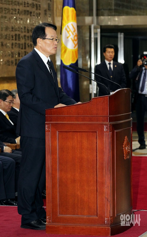 정의화 국회의장이 30일 서울 여의도 국회 중앙홀에서 열린 제66주년 국회 개원 기념식에서 기념사를 하고 있다.