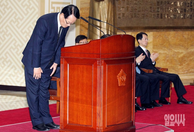 정의화 국회의장이 30일 서울 여의도 국회 중앙홀에서 열린 제66주년 국회 개원 기념식에서 기념사를 마친 뒤 인사하고 있다.