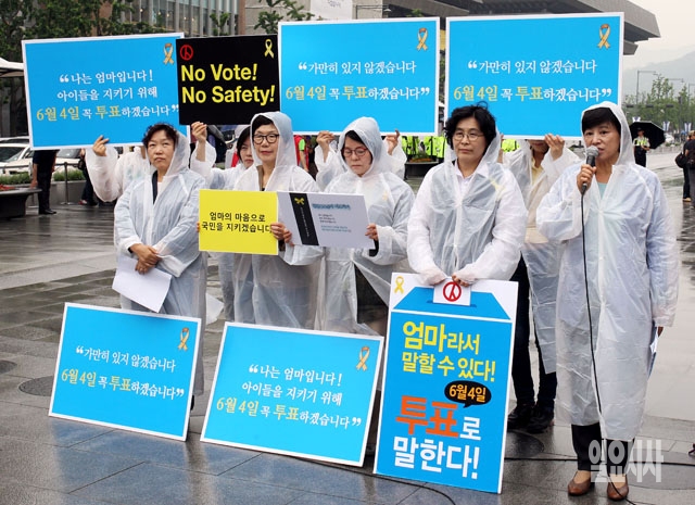 새정치민주연합 여성 국회의원들이 2일 서울 광화문광장 이순신 동상 앞에서 6·4 지방선거 투표참여를 촉구하는 대국민호소 기자회견을 하고 있다.