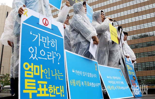 새정치민주연합 여성 국회의원들이 2일 서울 광화문광장 이순신 동상 앞에서 6·4 지방선거 투표참여를 촉구하는 대국민호소 기자회견을 하고 있다.