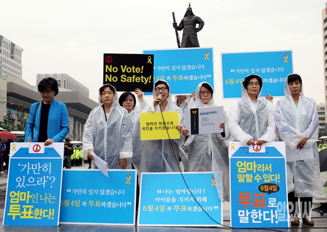 새정치민주연합 여성 국회의원들이 2일 서울 광화문광장 이순신 동상 앞에서 6·4 지방선거 투표참여를 촉구하는 대국민호소 기자회견을 하고 있다.