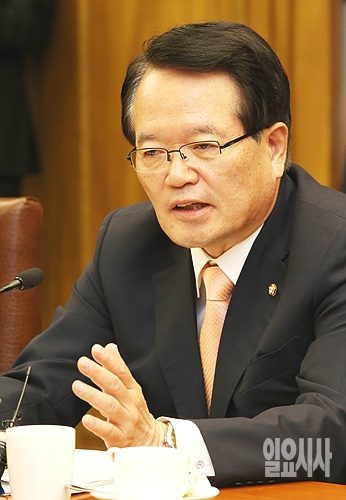 2일, 정의화 국회의장이 서울 여의도 국회 접견실에서 국회의장 취임 간담회를 갖고 취재진의 질문에 답변하고 있다.