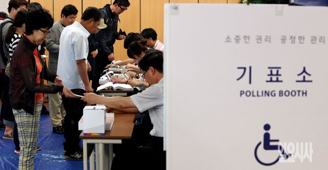 6·4 지방선거 투표날인 4일 서울 동작구 사당동에 마련된 투표소에서 시민들이 투표를 하고 있다.