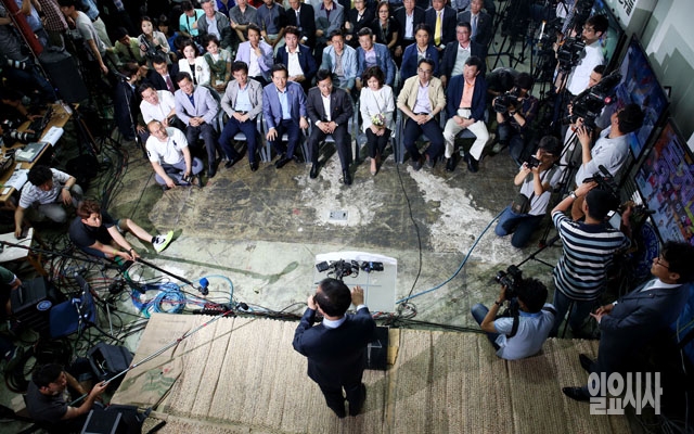 6.4 전국동시지방선거에서 서울시장 후보로 당선이 확실시 된 박원순 새정치민주연합 후보가 5일 오전 서울 종로구 선거캠프에서 기자회견을 갖고 있다.