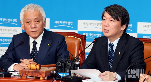 안철수 새정치민주연합 공동대표(오른쪽)가 5일 서울 여의도 국회에서 열린 최고위원회의에서 모두발언을 하고 있다.