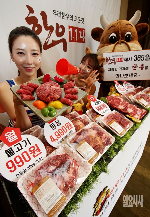 한우자조금관리위원회가 10일 서울 소공로 더 플라자 호텔에서 온라인 직거래장터 '한우 114 할인몰' 오픈 기념 '대한민국 원정 8강 기원, 우리 한우 먹고 으쌰으쌰' 특가 이벤트를 선보이고 있다.