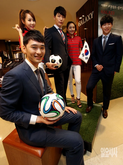 삼성에버랜드 남성복 브랜드 갤럭시가 10일 서울 소공동 롯데백화점 본점 매장에서 축구 국가대표팀 공식 단복 '프라이드 일레븐(Pride 11)'을 비롯한 '프라이드 일레븐 라인'을 선보이고 있다.