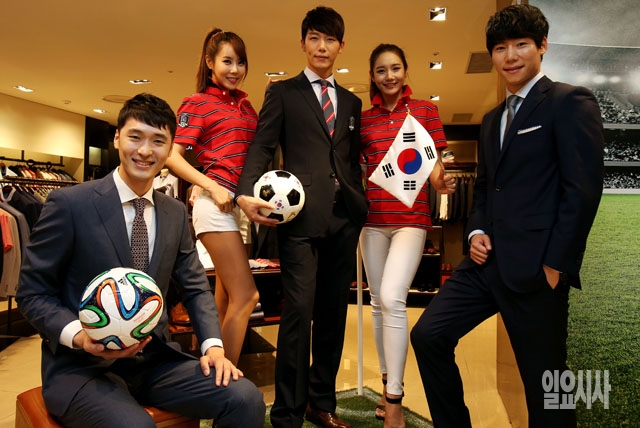 삼성에버랜드 남성복 브랜드 갤럭시가 10일 서울 소공동 롯데백화점 본점 매장에서 축구 국가대표팀 공식 단복 '프라이드 일레븐(Pride 11)'을 비롯한 '프라이드 일레븐 라인'을 선보이고 있다.