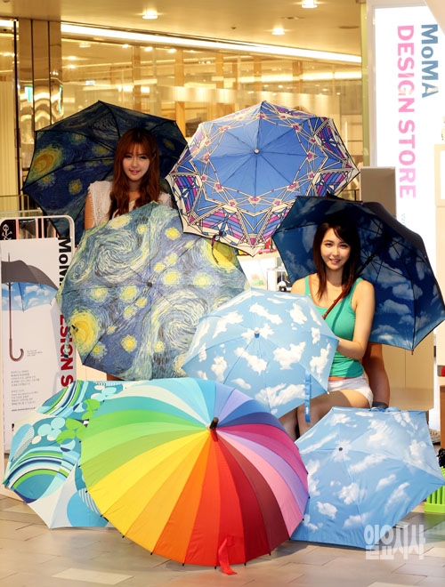 뉴욕현대미술관(MoMA)의 디자인 스토어인 '모마샵'이 10일 서울 중구 신세계백화점 본점에서 다양한 예술작품을 모티브로 한 '모마 우산'을 선보이고 있다.
