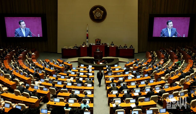 이완구 새누리당 원내대표가 11일 서울 여의도 국회에서 열린 본회의에서 교섭단체 대표 연설을 하고 있다.
