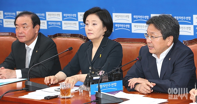 강기정 새정치민주연합 당내 관피아 방지 특별위원장이 10일, 서울 여의도 국회에서 열린 원내대책회의에서 발언하고 있다.