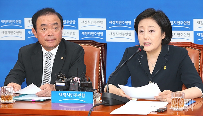 박영선 새정치민주연합 원내대표가 10일, 서울 여의도 국회에서 열린 원내대책회의에서 검찰의 2007년 남북정상회담 대화록 유출사건 수사와 관련해 발언하고 있다.