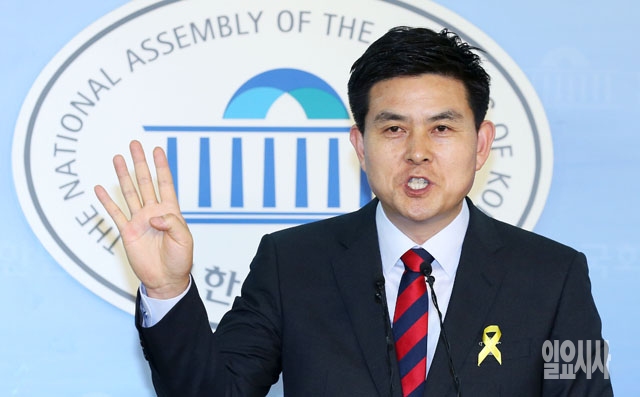 김태호 새누리당 의원이 11일 서울 여의도 국회 정론관에서 기자회견을 갖고 7·14 전당대회 출마 선언을 하고 있다.