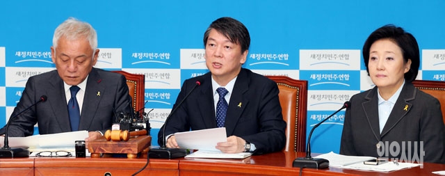 안철수 새정치민주연합 공동대표(가운데)가 11일 서울 여의도 국회에서 열린 최고위원회의에서 모두발언을 하고 있다.