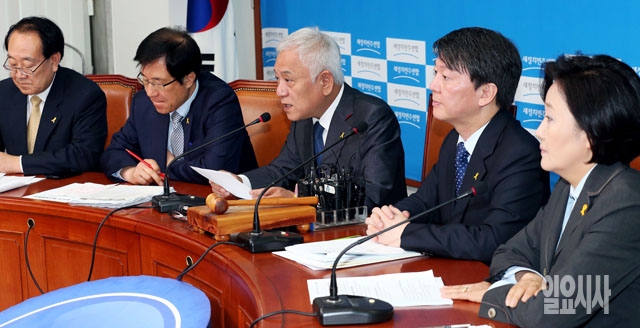 김한길 새정치민주연합 공동대표(가운데)가 11일 서울 여의도 국회에서 열린 최고위원회의에서 모두발언을 하고 있다.