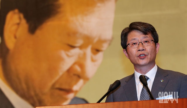 류길재 통일부 장관이 12일 서울 여의도 63시티 그랜드볼룸에서 열린 6·15남북정상회담 제14주년 기념식에서 축사를 하고 있다.