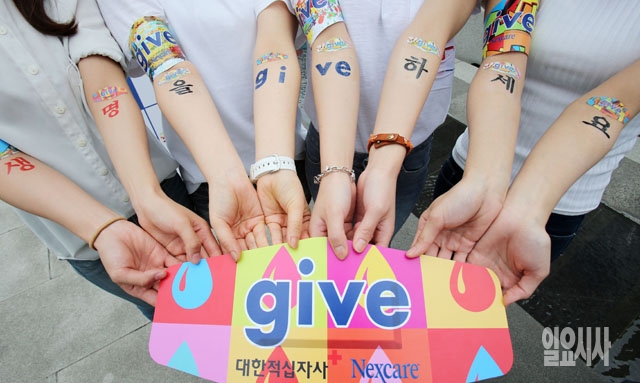 세계헌혈자의 날을 하루 앞둔 13일 서울 광화문광장에서 대한적십자사와 한국쓰리엠의 넥스케어가 나눔과 헌혈의 의미를 보다 즐겁게 느끼고 참여할 수 있는 '기브(give) 캠페인'을 벌이고 있다.