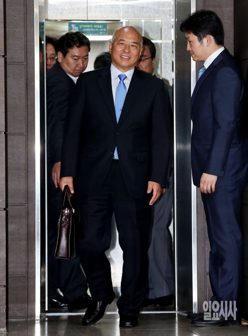 문창극 국무총리 후보자가 16일 오후 서울 종로구 정부서울청사 창성동 별관에서 퇴근하고 있다.