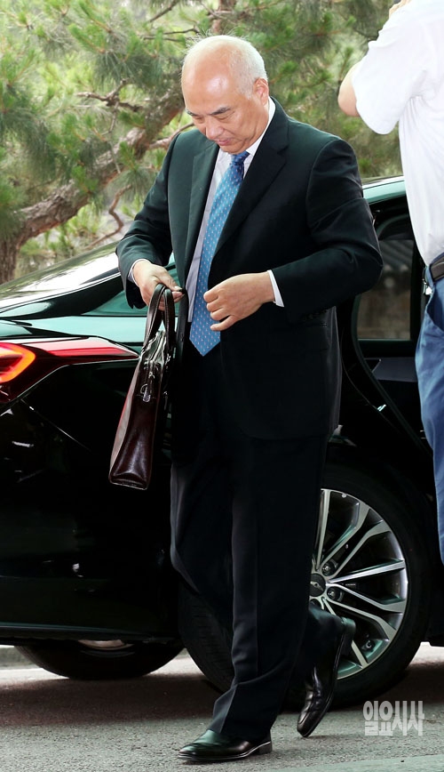문창극 국무총리 후보자가 17일 서울 종로구 정부서울청사 창성동 별관으로 출근하고 있다.