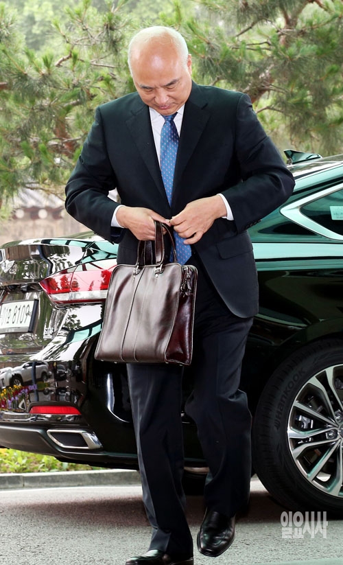 문창극 국무총리 후보자가 17일 서울 종로구 정부서울청사 창성동 별관으로 출근하고 있다.