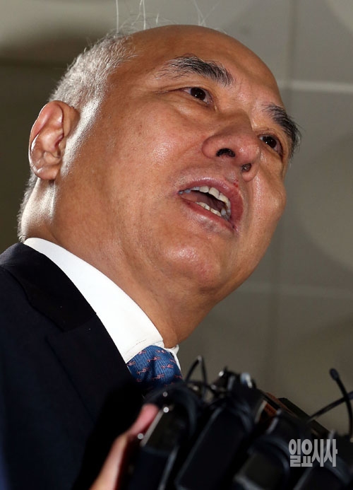 문창극 국무총리 후보자가 17일 서울 종로구 정부서울청사 창성동 별관으로 출근하며 취재진의 질문에 답하고 있다.