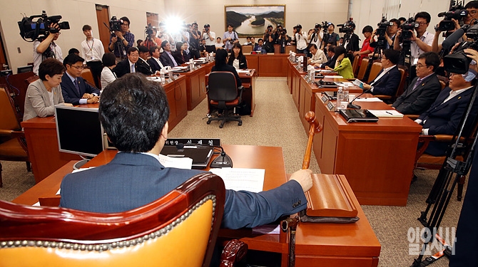 17일 오후, 서울 여의도 국회에서 열린 세월호특위에서 심재철 특위위원장이 '세월호 예비조사의 건' 등을 의결시키고 있다.