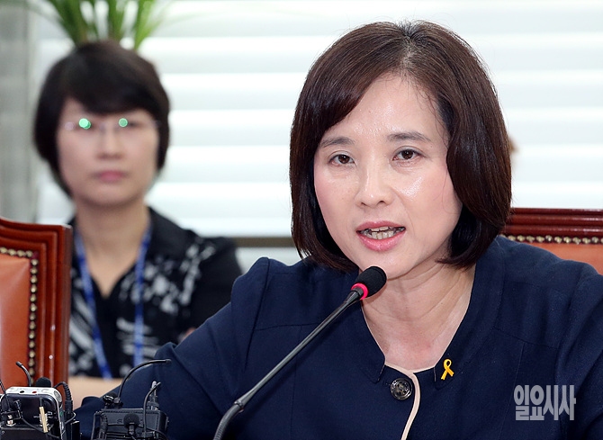 17일, 유은혜 새정치민주연합 의원이 서울 여의도 국회에서 열린 원내대책회의서 모두발언하고 있다.