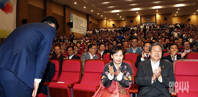 18일, 새누리당 7·14전당대회 출마를 선언한 김태호 의원이 서울 여의도 국회에서 열린 출판기념회에서 지지자 및 참석자들에게 감사의 인사를 하고 있다.