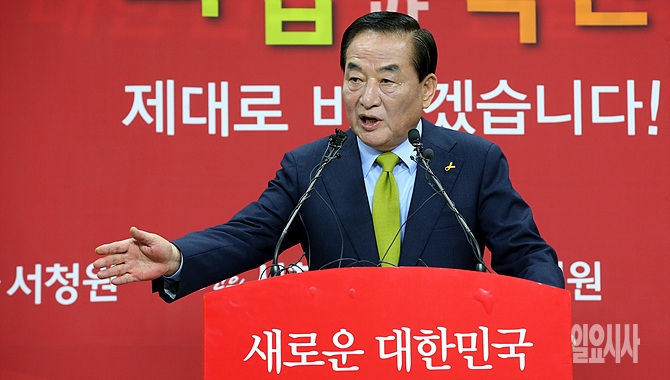 19일, 서울 여의도 새누리당 당사에서 친박(친 박근혜)계 맏형으로 통하는 서청원 의원이 기자회견을 열고 당 대표를 선출하는 7·14전당대회 출마를 공식선언하고 있다.