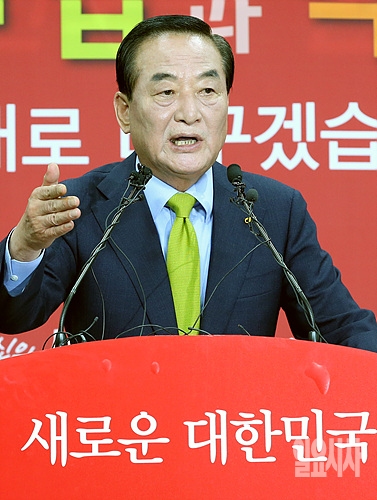 19일, 서울 여의도 새누리당 당사에서 친박(친 박근혜)계 맏형으로 통하는 서청원 의원이 기자회견을 열고 당 대표를 선출하는 7·14전당대회 출마를 공식선언하고 있다.