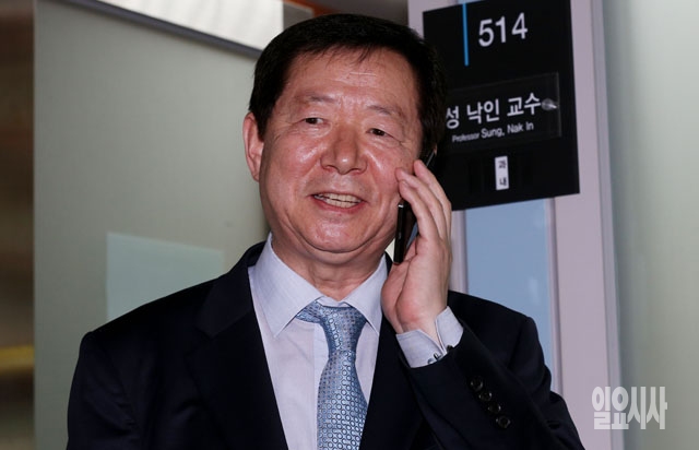 [포토] 축하 전화 받는 성낙인 교수