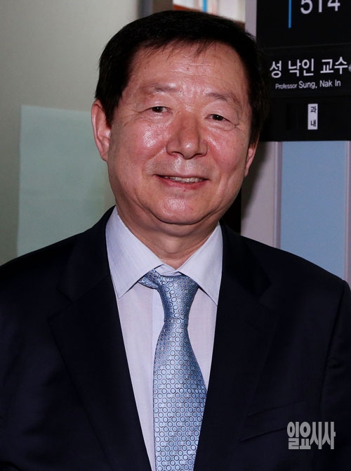서울대학교 차기 총장 최종후보로 선출된 성낙인 법학전문대학원 교수가 19일 서울대학교 자신의 교수실에서 밝게 웃고 있다.
