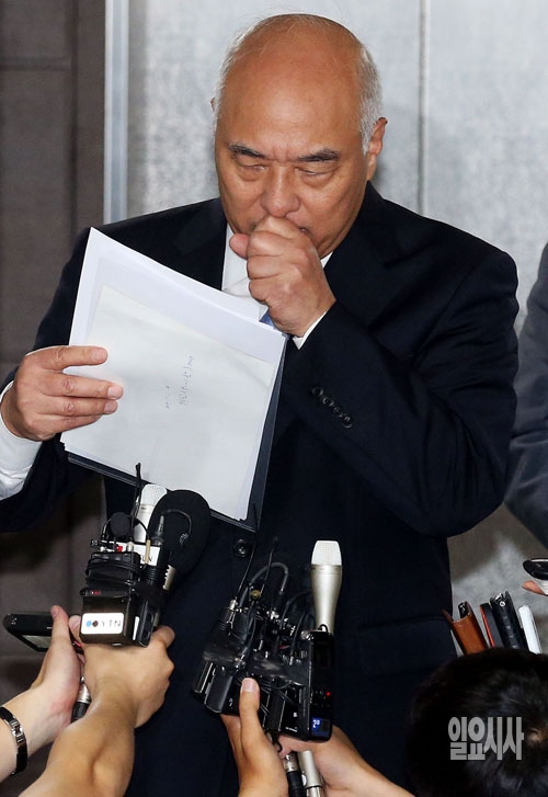 문창극 국무총리 후보자가 20일 서울 종로구 정부서울청사 창성동 별관에서 퇴근하면서 취재진의 질문에 답하고 있다.