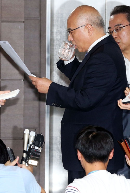 [포토] 물 마시는 문창극 총리 후보자