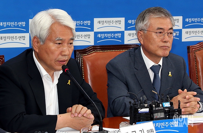 23일 서울 여의도 국회 새정치민주연합 원내대표실에서 강원 고성 GOP총기사고에 대한 논의 자리에서 '장성 출신(육군 제3야전군 사령관)' 백군기 의원이 발언하고 있다.