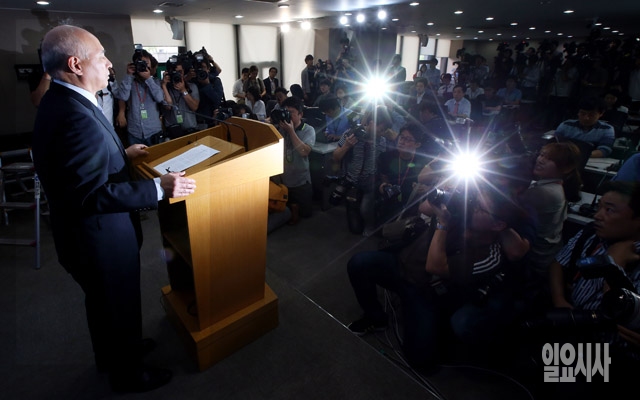 문창극 국무총리 후보자가 24일 서울 종로구 정부서울청사에서 긴급 기자회견을 갖고 자진 사퇴를 밝히고 있다.