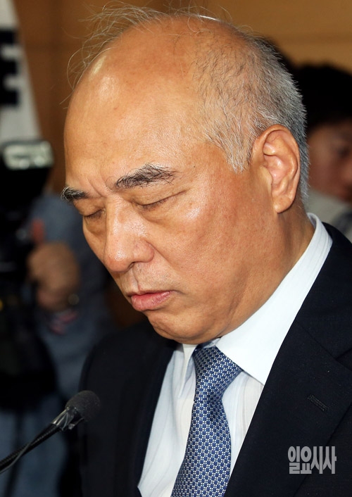 문창극 국무총리 후보자가 24일 서울 종로구 정부서울청사에서 긴급 기자회견을 갖고 자진 사퇴를 밝히고 있다.