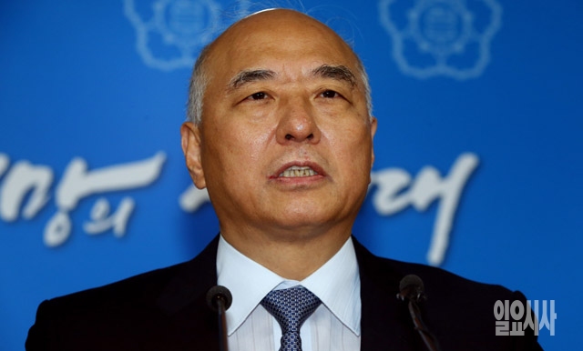 문창극 국무총리 후보자가 24일 서울 종로구 정부서울청사에서 긴급 기자회견을 갖고 자진 사퇴를 밝히고 있다.