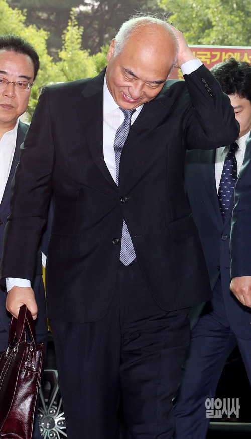 문창극 국무총리 후보자가 24일 서울 종로구 정부서울청사 창성동 별관으로 출근하고 있다. 이날 문 후보자는 기자회견을 갖고 국무총리 후보직을 자진 사퇴했다.