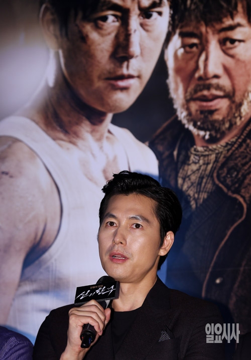 배우 정우성이 24일 서울 메가박스 동대문점에서 열린 영화 '신의 한 수'(감독 조범구) 언론시사회에서 취재진의 질문에 답하고 있다.