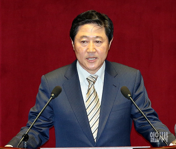 24일 오후, 서울 여의도 국회 본회의장에서 열린 본회의에서 국회 외교통상통일위원회 위원장으로 선출된 유기준 의원(새누리당)이 당선인사를 하고 있다.