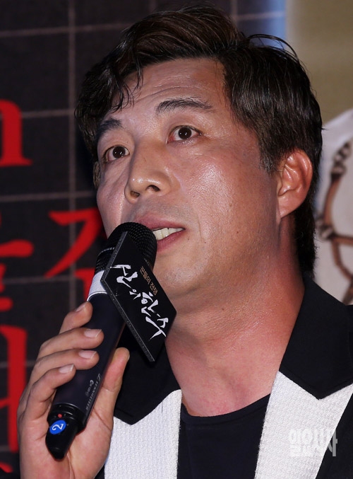 배우 안길강이 24일 서울 메가박스 동대문점에서 열린 영화 '신의 한 수'(감독 조범구) 언론시사회에서 취재진의 질문에 답하고 있다.