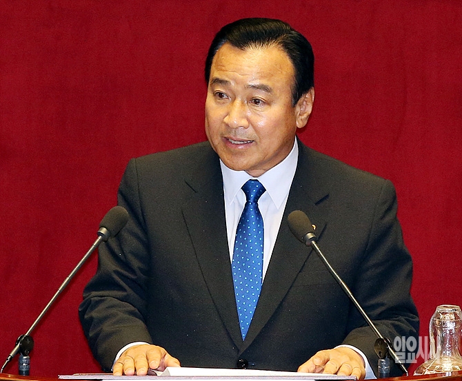 24일 오후, 서울 여의도 국회 본회의장에서 열린 본회의에서 국회 운영위원회 위원장으로 선출된 이완구 의원(새누리당)이 당선인사를 하고 있다.