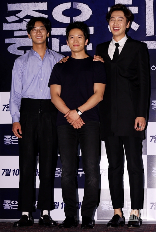 25일 서울 CGV 왕십리점에서 열린 영화 '좋은 친구들'(감독 이도윤) 언론시사회에서 출연배우들이 포토타임을 갖고 있다. 왼쪽부터 주지훈, 지성, 이광수.