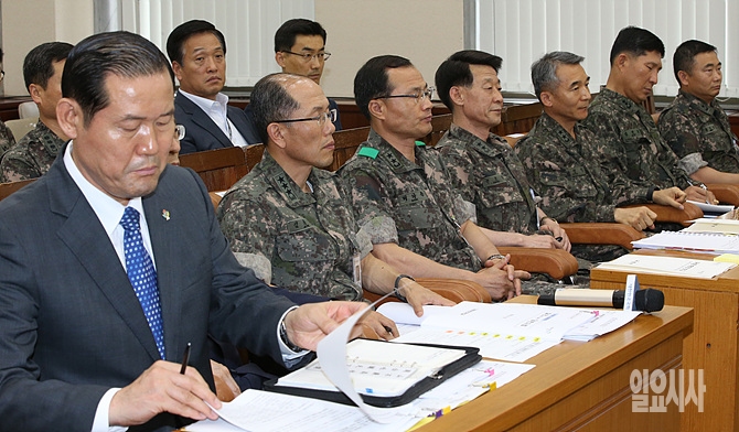 이날 전체회의 참석을 위해 국방부 소속의 장군들이 나란히 출석해 있다.