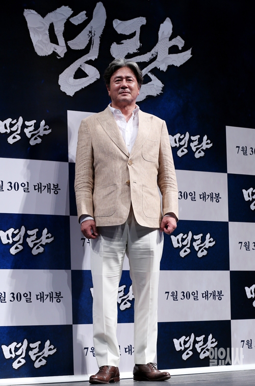배우 최민식이 26일 서울 CGV 압구정점에서 열린 영화 '명량'(감독 김한민) 제작보고회에서 포토타임을 갖고 있다.