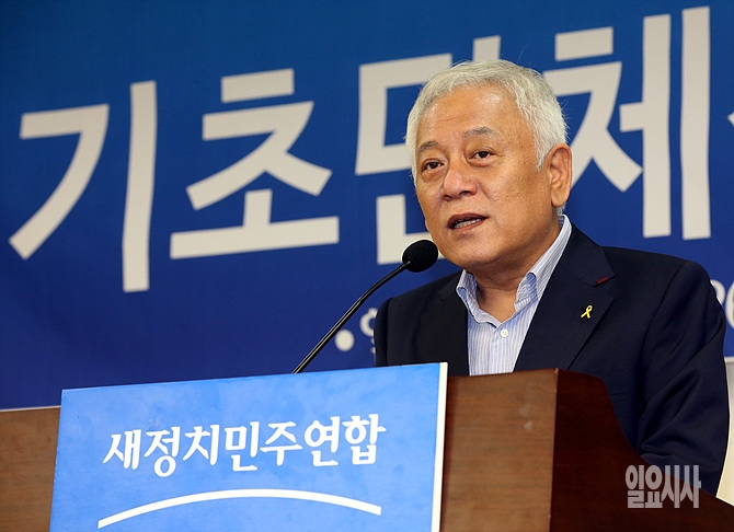 김한길 새정치민주연합 공동대표가 26일 오후 서울 여의도 국회 의원회관에서 열린 기초단체장 당선자 워크숍에서 인사말을 하고 있다.