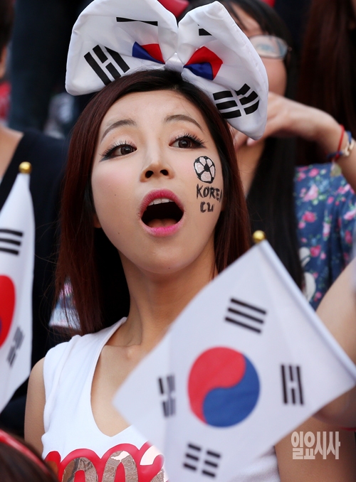 2014 브라질 월드컵 조별리그 H조 대한민국과 벨기에의 경기가 열린 27일 서울 광화문광장에 모인 붉은악마 및 시민들이 경기를 보며 응원을 펼치고 있다.