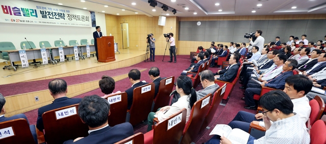 이종진 새누리당 의원이 27일 서울 여의도 국회 의원회관에서 열린 '창조경제 거점 HUB구축을 위한 비슬밸리 발전전략 정책토론회'에서 기념사를 하고 있다.